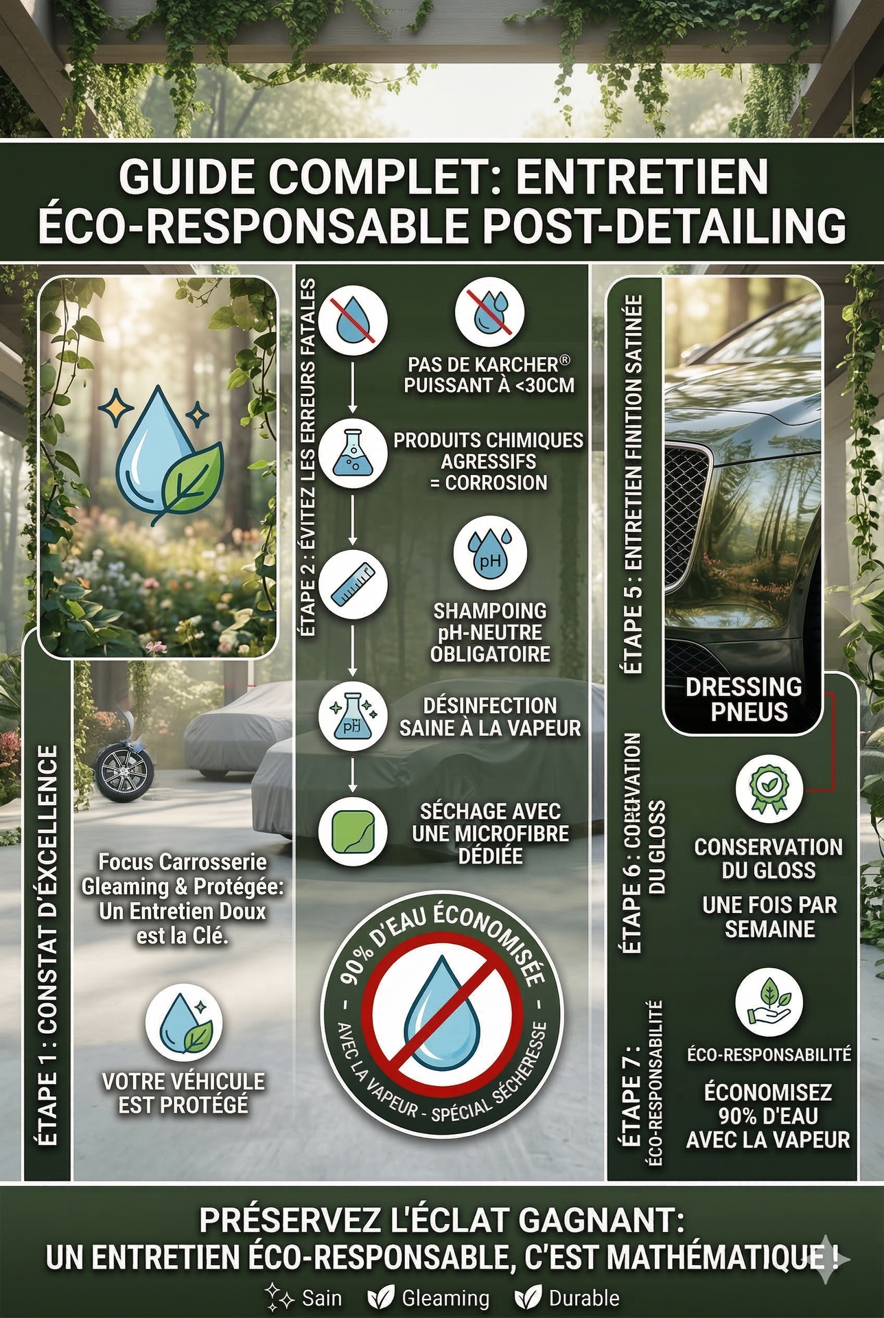 Éco-Responsable : Une méthode ultra-efficace qui consomme jusqu'à 90% d'eau en moins qu'un lavage traditionnel.